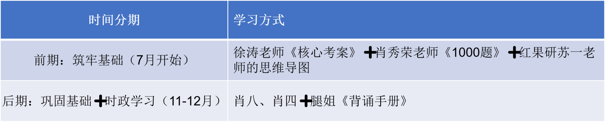 1.公共课方面,政治学习要注重积累,紧跟徐涛老师的课程打基础,后期通过肖秀荣的押题卷强化记忆。