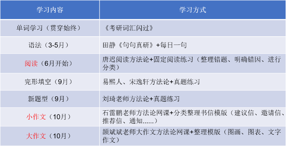 学习过程:单词——语法——分题型练习——12月份进行模拟做题